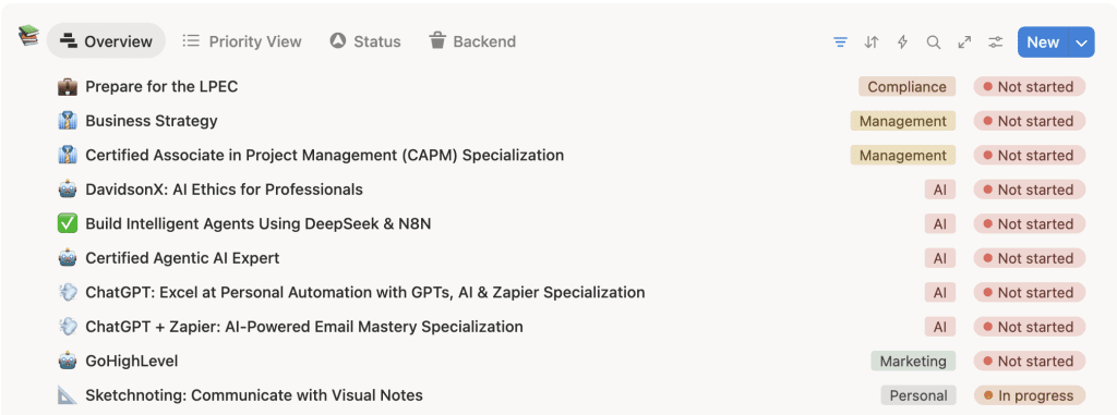 It’s literally a productivity system disguised as a learning tracker.