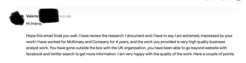 I even gave her some preliminary work to do for me, which helped her land a client doing the same.