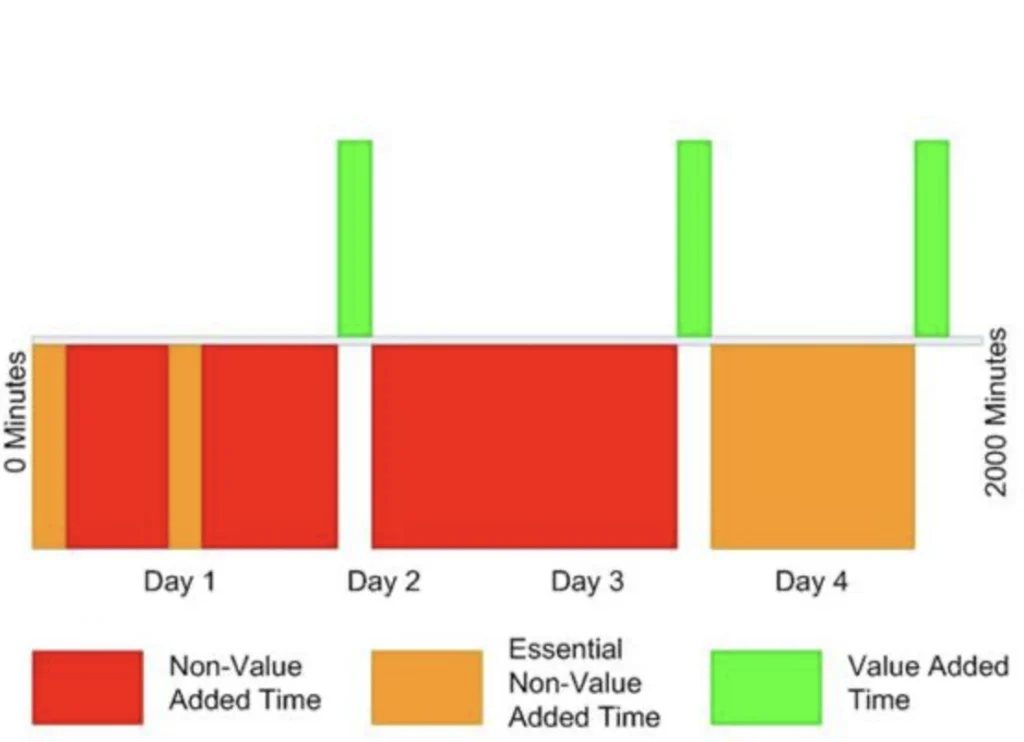 - Waiting: Delays between process steps, often due to bottlenecks.